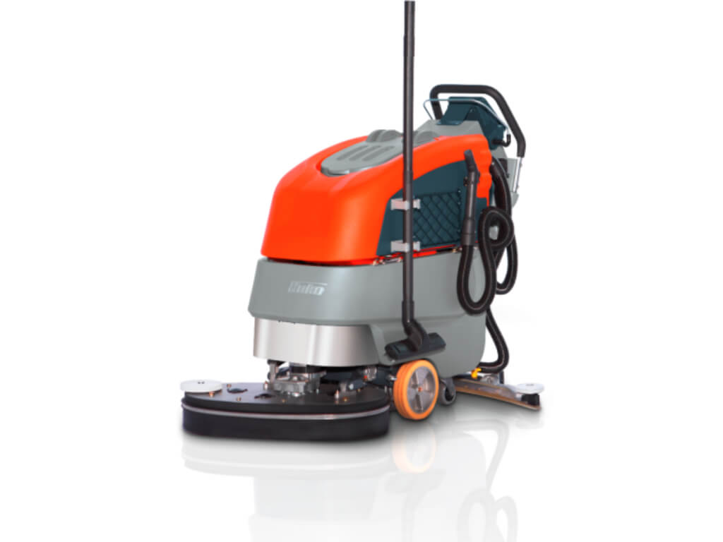 Die kompakte Walk-behind-Scheuersaugmaschine Scrubmaster B 45 ist ideal geeignet für das gründliche Scheuersaugen von kleinen und mittelgroßen Flächen, zum Beispiel im Einzelhandel, in Verwaltungsgebäuden, in Hotels und in der Gastronomie oder in Werkstätten.