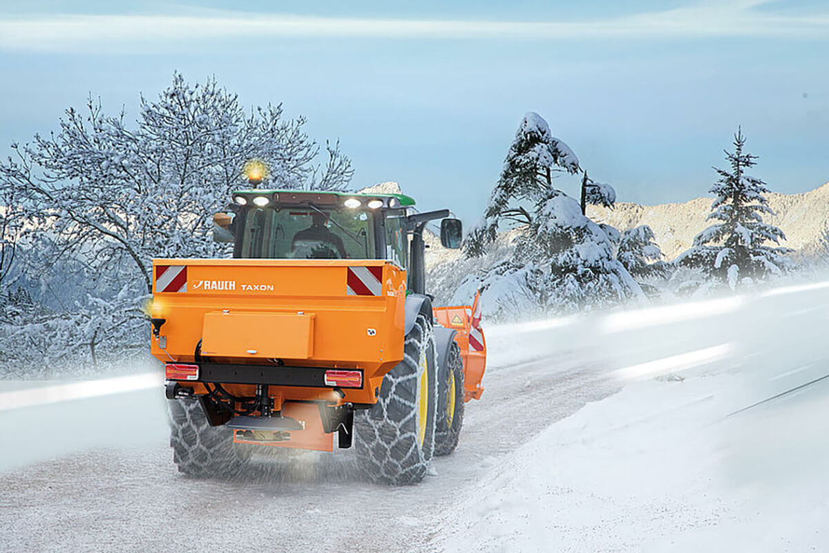 TAXON 25.1 rundet das RAUCH Winterdienst Erfolgsprogramm nach oben hin ab. Als Präzisionsstreuer mit Zwangsdosierung über die Förderschnecke ist er idealer Partner für den kommunalen Winterdienst. Mit einem Behältervolumen von 1.500 l setzt TAXON Maßstäbe in der Verteilgenauigkeit, im eleganten Bedienkomfort sowie in der Flexibilität im Streueinsatz. Das Schneckenfördersystem ersetzt herkömmliche Rührwerke und sorgt für eine gleichmäßig saubere Behälterleerung und durch die ebenfalls hydraulisch angetriebene Wurfscheibe für eine präzise Ausbringung. Das ermöglicht höchste Einsatzsicherheit, wenn es darauf ankommt.